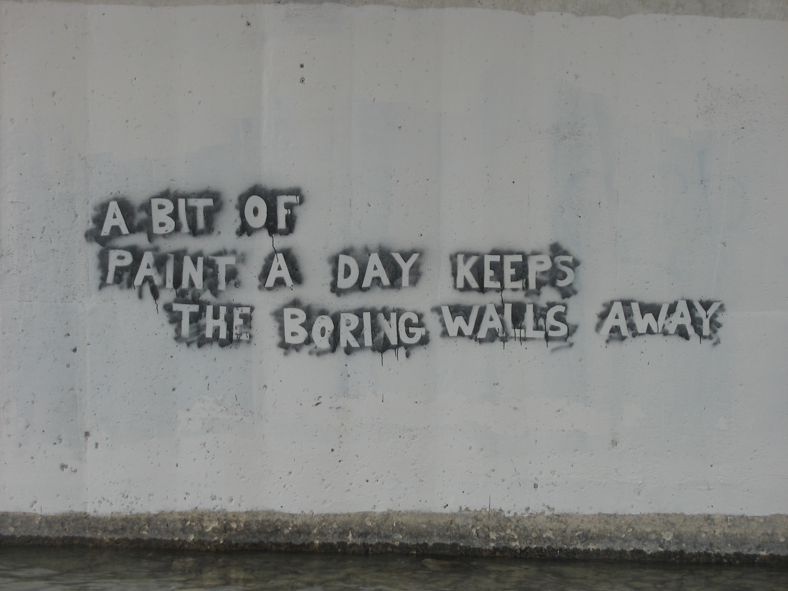 Though the southern sky was brilliant blue, dark clouds loomed to the north. I wondered if I was going to get wet. Sure enough, the rain started to fall about 4 km into my walk. I took refuge for a few minutes under Bowness Bridge. I’m not fond of graffiti but I had to chuckle when I read this!