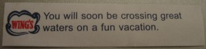 On the way home we stopped in Camrose again to check on our luck. Since splitting our $2 win seven ways wouldn’t work very well, we invested in another ticket! That draw is on Wednesday and the jackpot is an estimated $8 million so the dream goes on. It would probably be easy to guess how I’d spend some of my winnings. After all, here’s what my fortune cookie had to say!