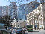Zhongshan Square (which is actually circular) is the hub of Dalian’s business district. With ten roads radiating out from its central roundabout, it is encircled by ten buildings dating from the early 1900s that have been declared cultural heritage buildings under the protection of both the Chinese government and the Dalian municipal government. Though the central part of the square is undergoing reconstruction at the moment, I was so enthralled by the classical architecture surrounding it that I hardly noticed. We walked the entire circle admiring each of the stately buildings and remarking on the contrast with the much more modern structures that formed a backdrop for them before continuing our walk north along Shanghai Road toward Russian Customs Street.