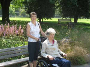 For the past few years, it’s been a chore to get Mom to leave their apartment. Now, at 89 years old, she is incontinent, legally blind and confined to a wheelchair. Though these infirmities are fairly recent developments, in Mom’s mind she’s suffered from them for most of her life and she’s constantly coming up with fanciful explanations that are in no way grounded in reality. Last night she told us that people are trying to poison her with peanut butter which has always been a favourite of hers! Sometimes all we can do is laugh. It’s either that or cry. She’s clearly in the sixth of the seven clinical stages of Alzheimer’s and needs constant care and supervision.